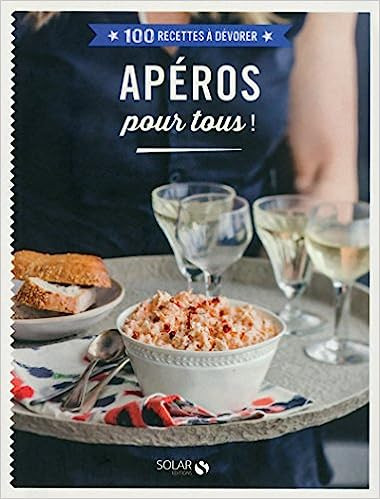 Apéros pour tous, LE livre de l’apéro à dévorer ! Apéros pour tous, ce sont avant tout 100 recettes irrésistibles sélectionnées avec soin qui s’adapteront à toutes les occasions – apéro dînatoire, élaboré/planifié à l’avance ou improvisé, en petit comité ou pour grandes tablées – avec au sommaire des recettes à grignoter (Plateau poissonnier, plateau boucher, Plateau maraîcher) et à siroter (Cocktails latinos, Cocktails lounge, Cocktail sans alcool). Plus qu’un simple recueil de recettes, Apéros pour tous, ce sont aussi des idées menus qui vous aideront à varier vos préparations et à renouveler votre inspiration, autour de thèmes qui mettront tout le monde d’accord : apéros rustiques, à l’italienne, pour de grandes occasions, insolites et drôles, version express, autour de la Méditerranée… Découvrez également d’autres suggestions au fil du livre, grâce à des pictos pratiques (pour les super gourmands, pour les grands débutants, pour les très pressés…). Dans cet ouvrage, vous retrouverez des recettes incontournables et populaires (tarama, tempura de gambas, bricks à l’œuf, bœuf hâché et oignons, bruschetta tomates basilic, Mojito, Margarita …), ainsi que des recettes plus innovantes aux associations inédites (crevettes aux pommes et au gingembre, tiramisu de tomates et lard fumé, chutney d’aubergines, chips de carottes, pétillant à la pomme, smoothie des îles…). Toujours de réalisation facile, ces recettes vous mettront à n’en pas douter l’eau à la bouche et se laisseront volontiers… dévorer !