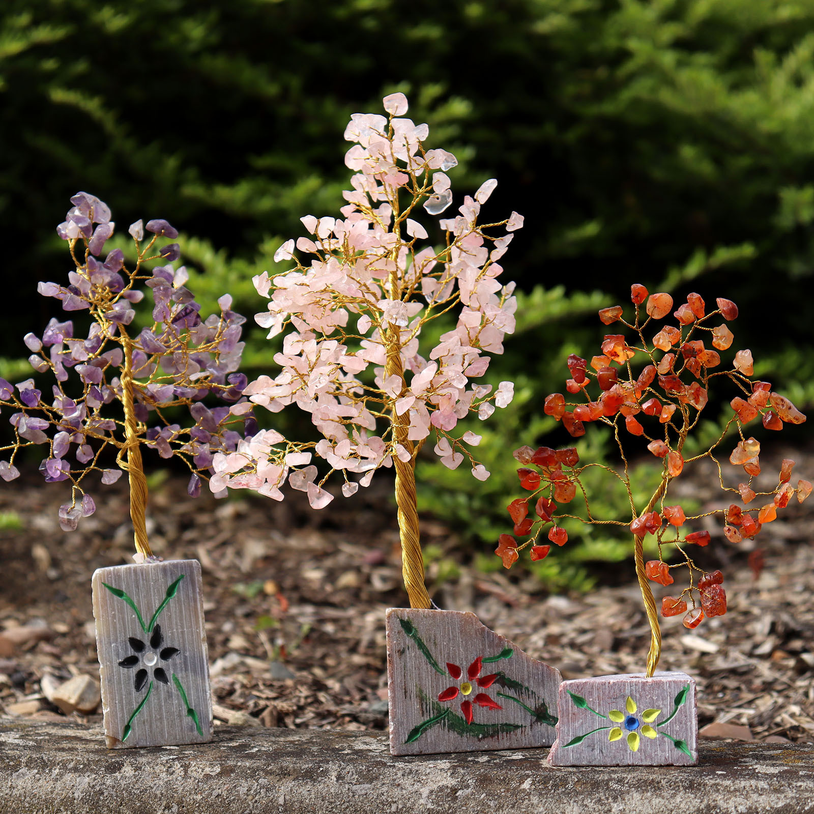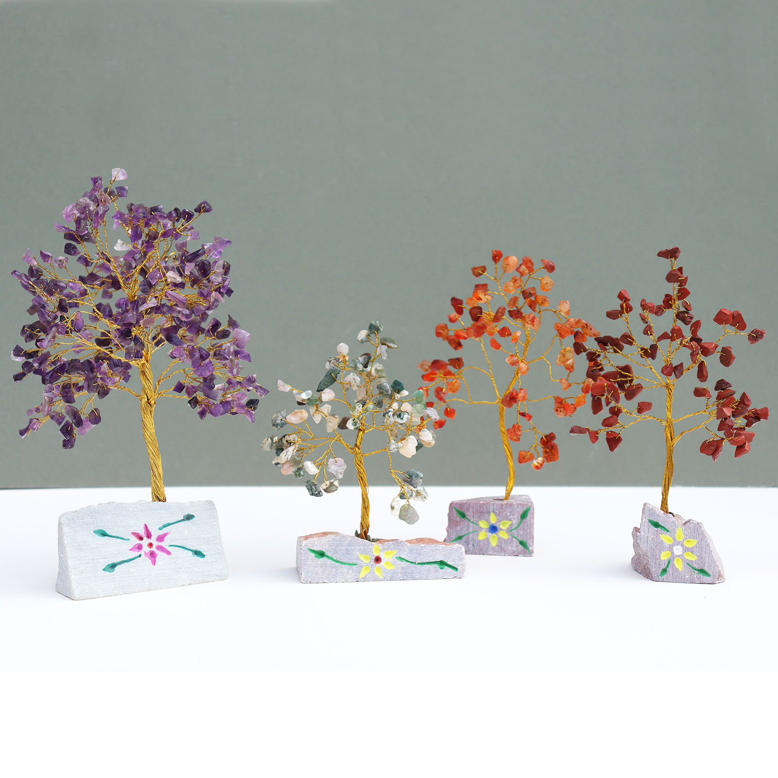 arbre à gemme de 80 pierres environ, origine inde, les dimensions peuvent variées en fonction de la composition, modèle en boutique environ 15 x 13 cm pour certains et 10 x 14 cm pour d’autres