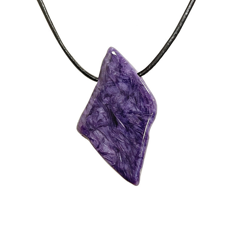 charoite ou charoïte, pendentif en pierre percée, 2 tailles, livré avec cordon noir ou montage sur fil acier selon les possibilités