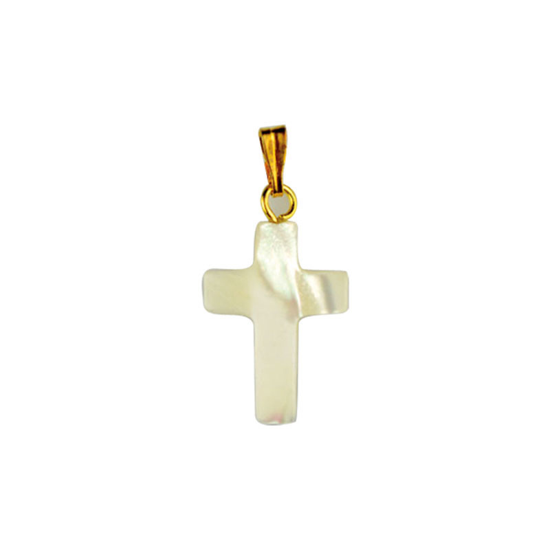 Croix en nacre de 12 à 25 mm, bélière argenté ou dorée selon les arrivages