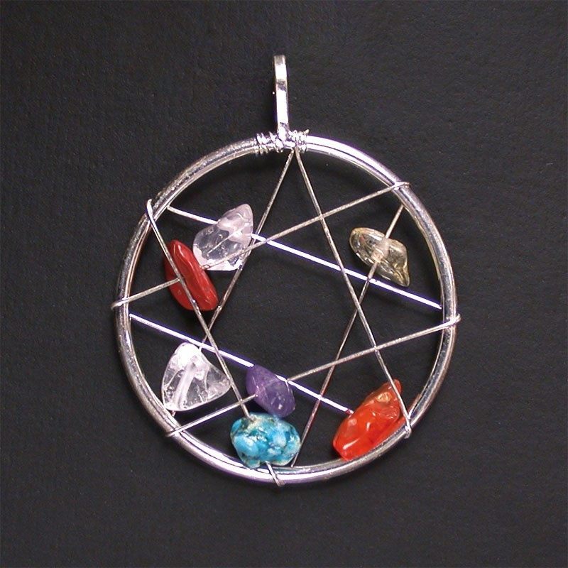 Pendentif « ATTRAPEUR DE REVES » Etoile 7 couleurs, env. 3,3 cm. Cristal de roche, Améthyste, Quartz rose, Howlite, Citrine, Cornaline, Jaspe rouge