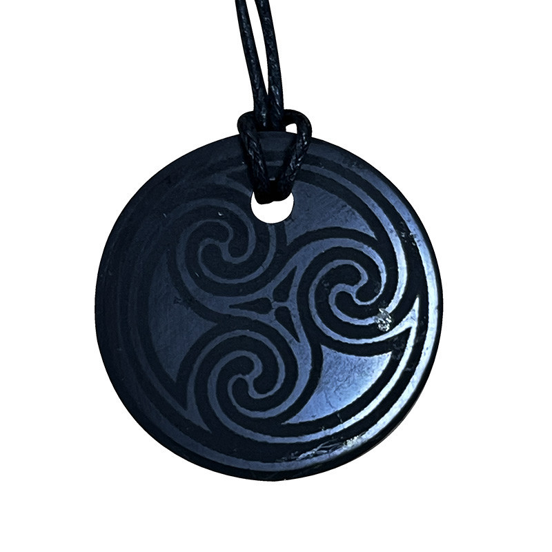 pendentif triskele, dimension environ 30 mm de diamètre, cordon longueur de 70 à 80 cm