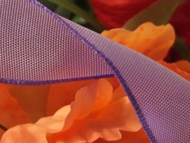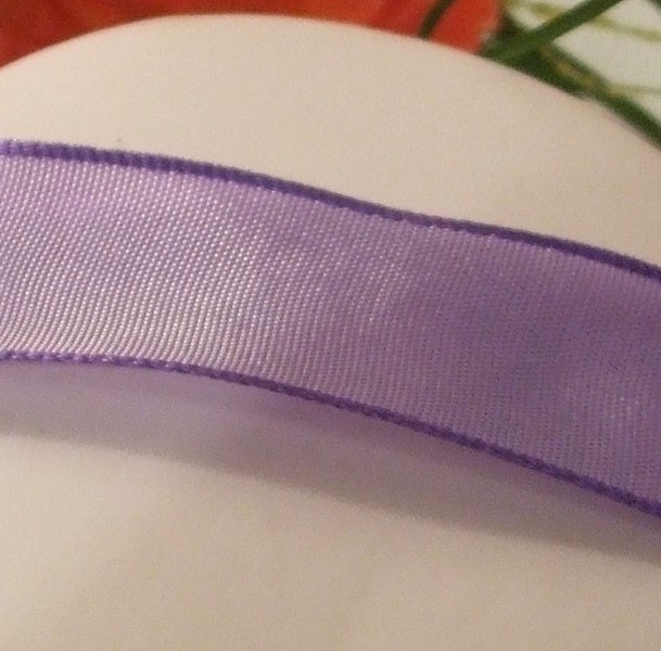 25 mm largeur, violine satiné, coté sont renforcés avec un fil métal (idéal pour faire des nouages)vendu par 1 mètre